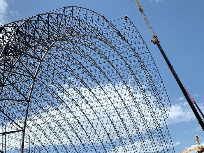 (2)网架加工前应对现场尺寸进行复测,确认无误后方可进行加工、安装;网架制作、运输、安装应遵守《空间网格结构技术规程》JGJ7-2010、《钢网架梅州螺栓球节点》JG/T 10-2009、《钢网架梅州螺栓球节点用高强度螺栓》 GB/T 16939-2016、《梅州钢结构梅州工程梅州施工规范》 GB50755-2012、《梅州钢结构梅州工程梅州施工质量验收标准》 GB50205-2020。